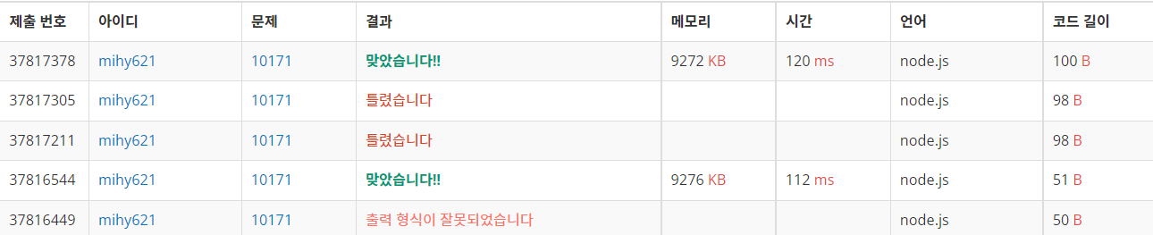 두 번째는 console.log()로 한 줄, 한 줄씩 출력해본 것!